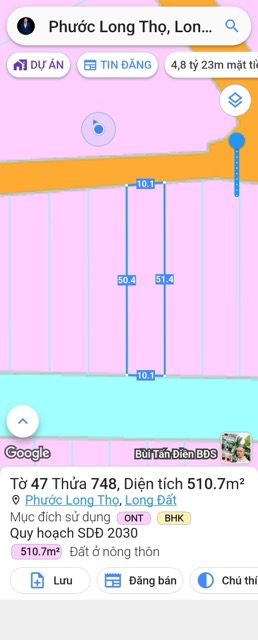 Diện tích đất 506m2 với 10m mặt tiền, 80m2 thổ cư ngay khu dân cư